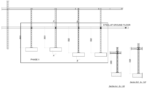 The customer checked the steel dimensions and confirmed the setting out. We then issued the first phase steelwork for approval. With all previous questions answered with various revisions and connections of the steelwork, we were then able to produce: